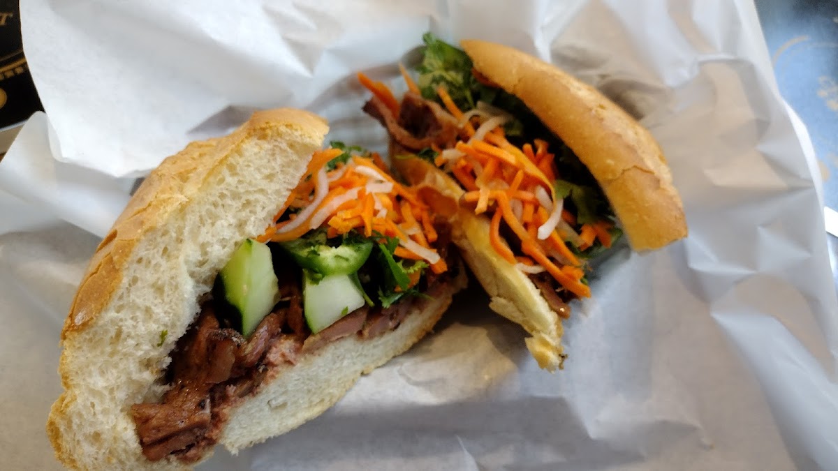 Bánh Mí (Vietnamese Ham Sandwich): A Vietnamese classic, this sandwich is served with fresh ingredients like pickled vegetables, cilantro, and your choice of meat, all tucked inside a crispy baguette.